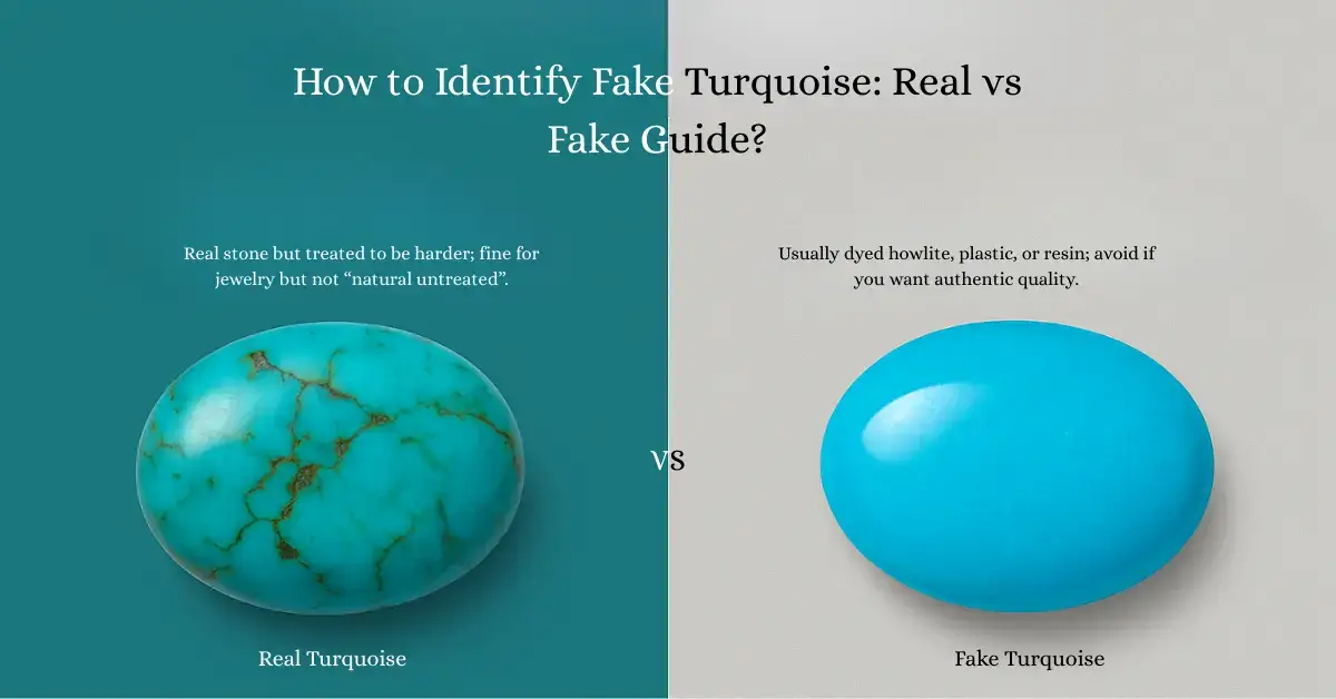 Ces turquoises paraissent souvent trop vives et uniformes, sans les subtiles variations de couleur que l'on observe dans la turquoise naturelle. La « matrice » noire peut sembler trop parfaite, presque comme un dessin.