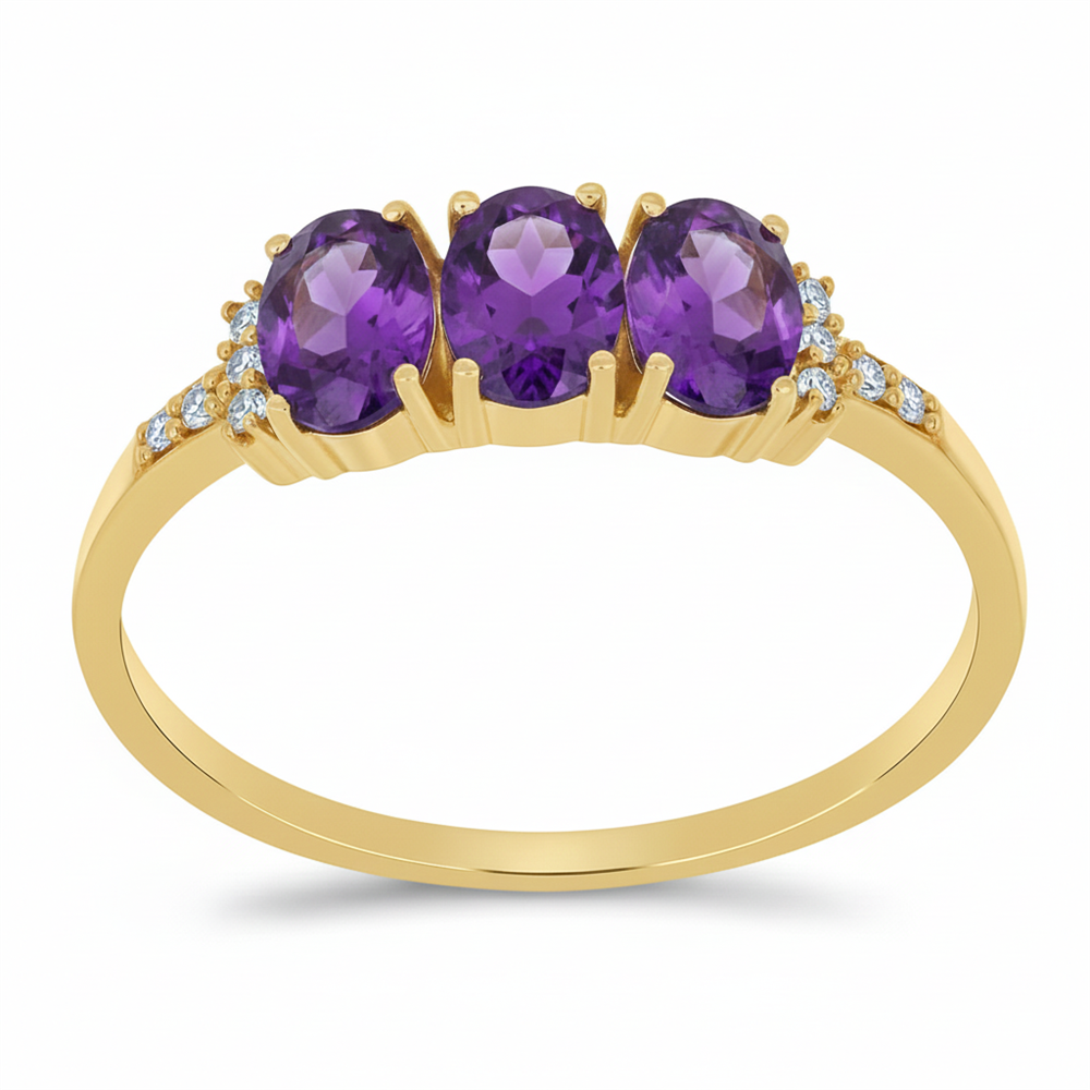 Partner with the leading Gold Jewelry Authorized Supplier for your core inventory. This classic 14K Gold Oval Amethyst Three-Stone Horizontal Ring is a timeless piece, now available for Volume Orders to USA and UK retail chains.