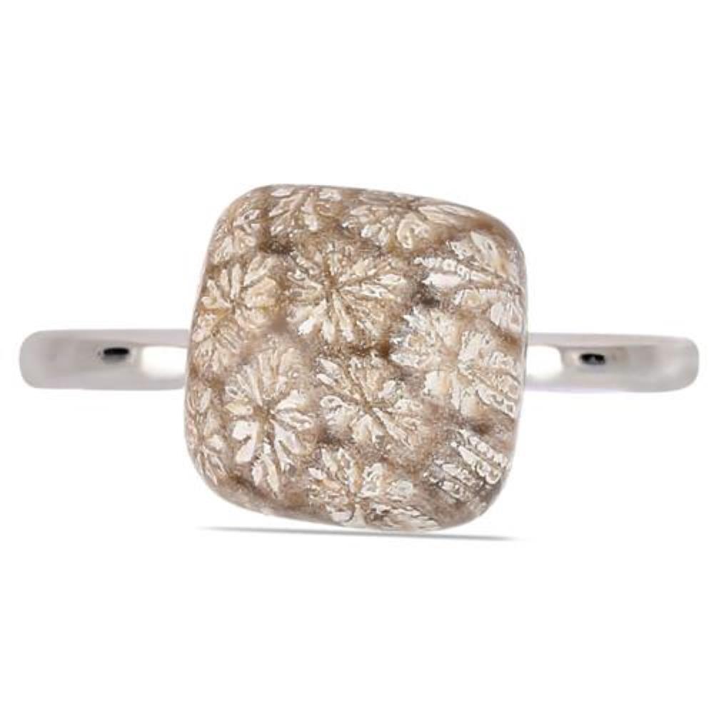 | FOSSIL CORAL | SQUARE CUSHION | 10 MM | 1 Pcs | 5.200 CTS | GLUE SETTING | CABOCHON |