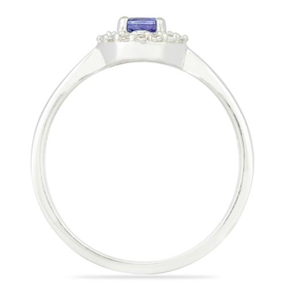 The natural violet-blue tone of tanzanite is magnified further thanks to the ring’s rhodium-plated finish. The ring's dimensions are 7.85 mm × 8.10 mm top profile and a 1.97 g weight, so you can have it every day comfortably, along with the visual impression that is second to none.